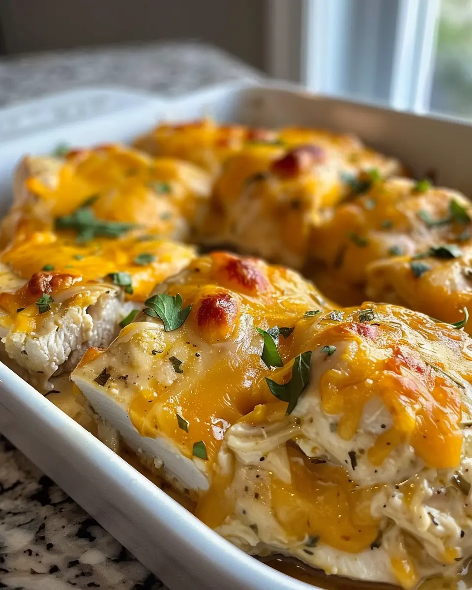 In conclusion, the 4-Ingredient Ranch Chicken Bake is a game-changer for busy weeknights. With just a handful of simple ingredients, you can whip up a delicious, flavorful dish that family and friends will adore. The creamy ranch dressing combined with juicy chicken creates a comforting meal that feels indulgent yet requires minimal effort. It’s the perfect option for those nights when you want to impress without spending hours in the kitchen.