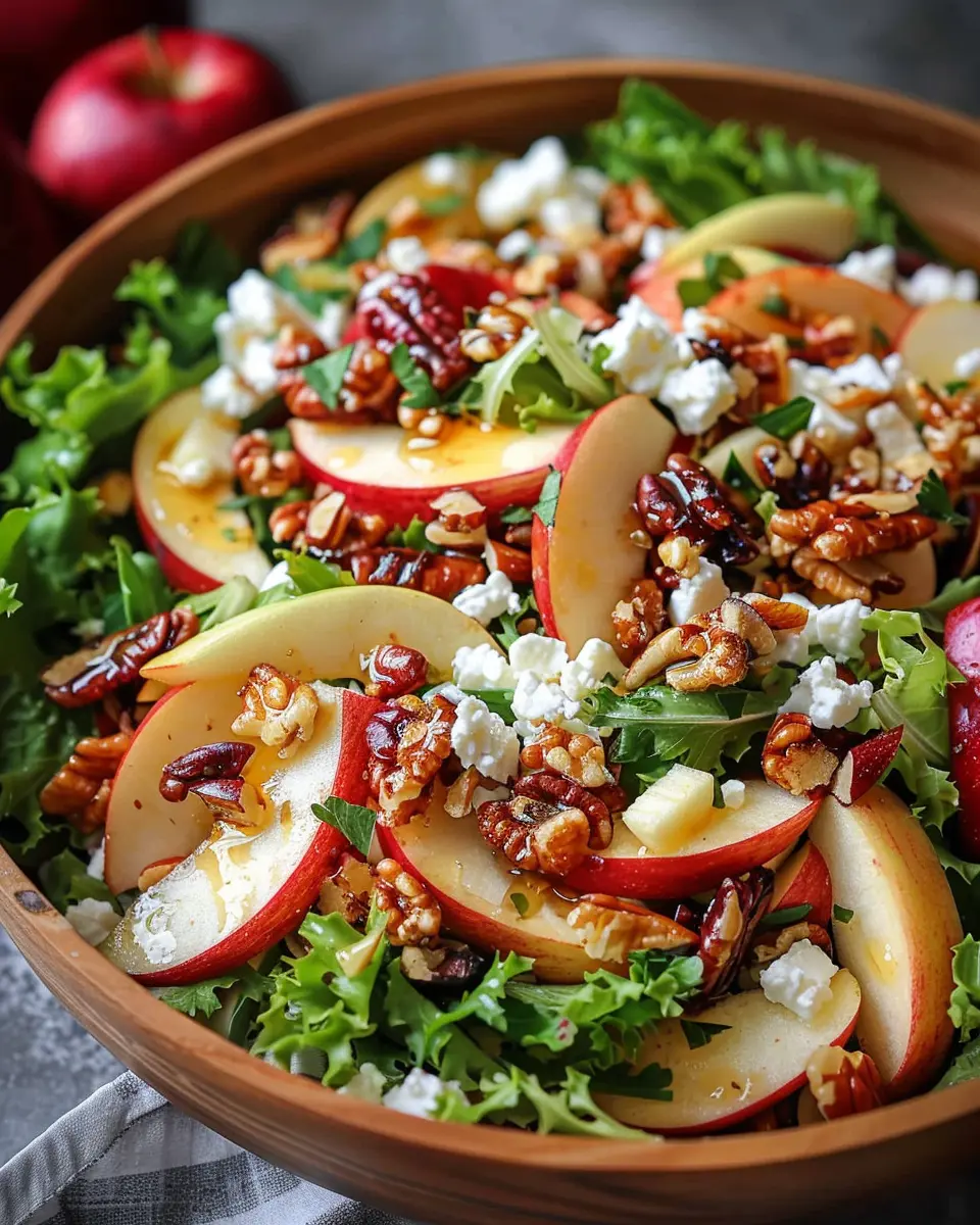 Make your salad a feast for the eyes! Consider layering the ingredients in a trifle dish for a stunning centerpiece, showcasing the vibrant colors of Honeycrisp apples, crumbled feta, and leafy greens. You can also serve it in mason jars for individual portions—perfect for picnics or meal prep.