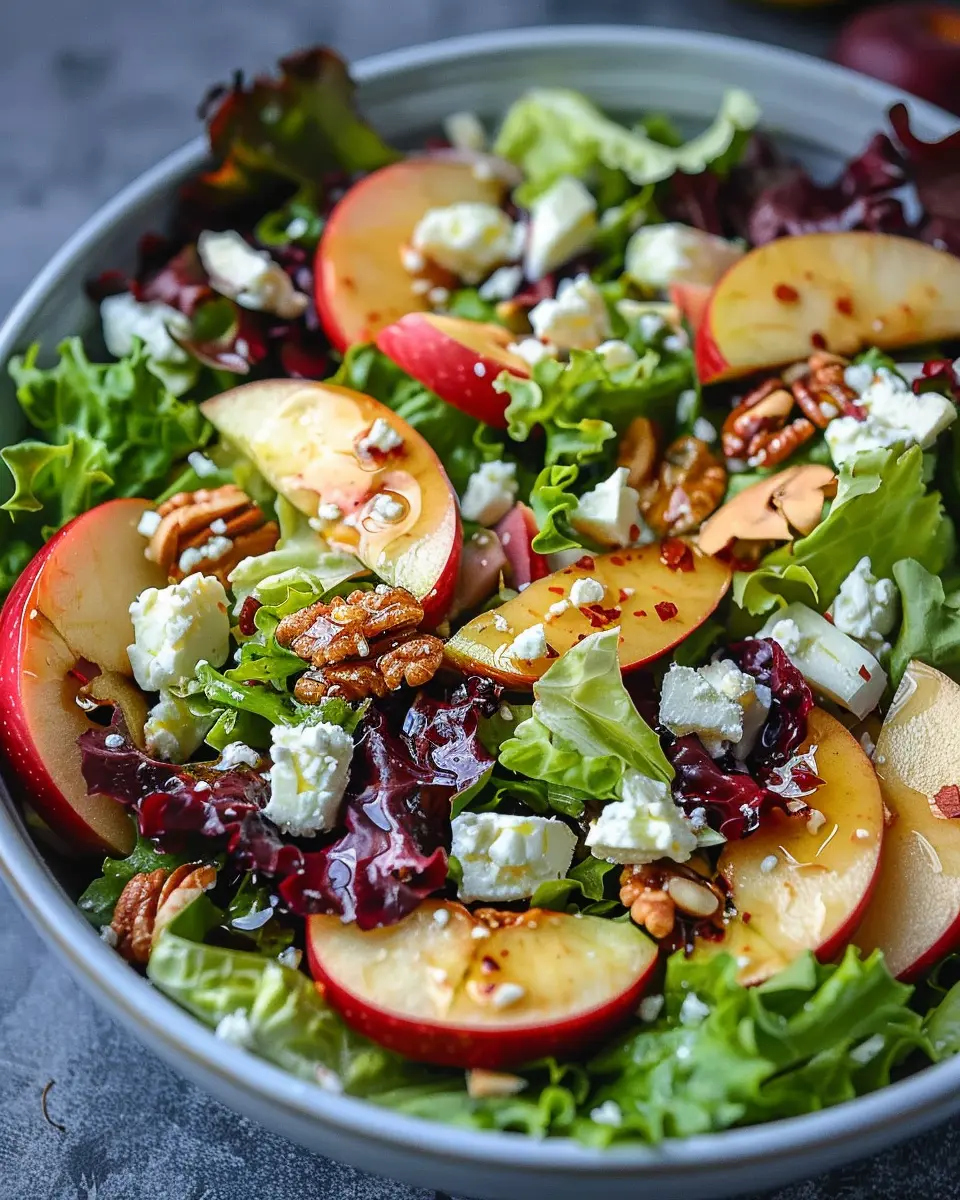 Experience the delightful blend of sweet and savory in this Honeycrisp Apple Feta Salad.
