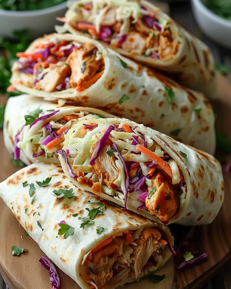 Delicious BBQ Chicken Coleslaw Wraps that bring together savory flavors and a delightful crunch.