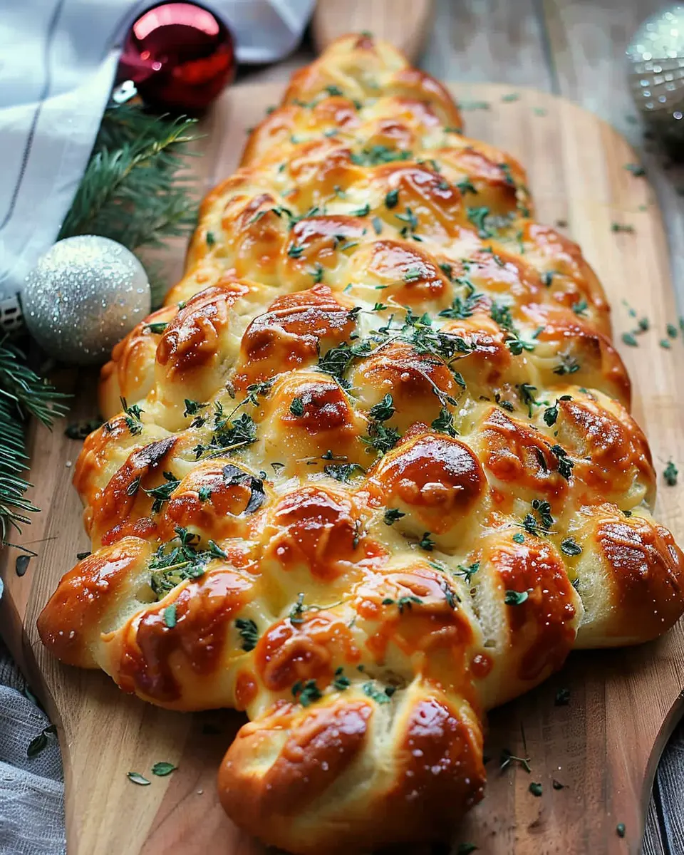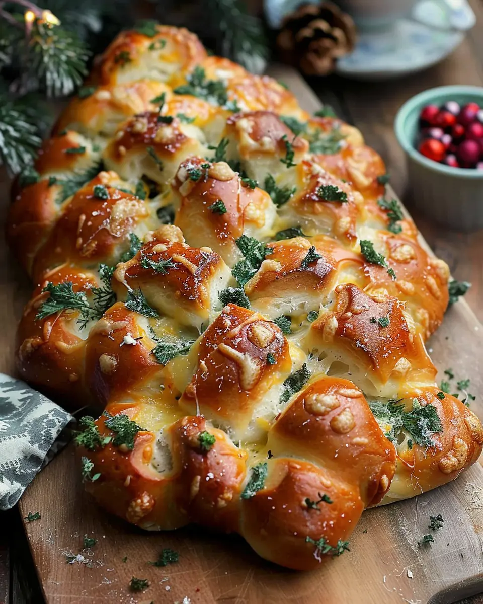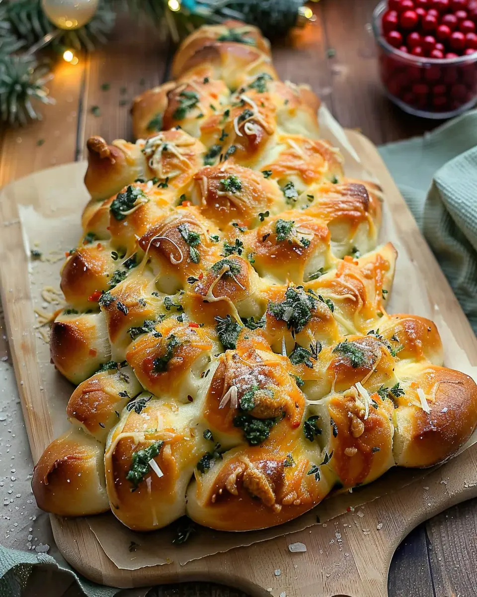 A delightful and festive bread shaped like a Christmas tree, perfect for family gatherings.