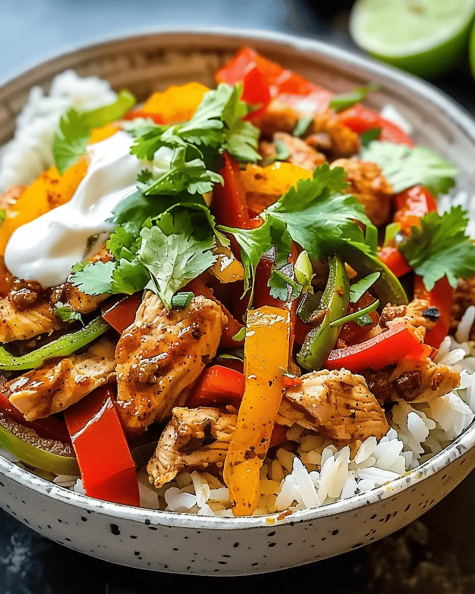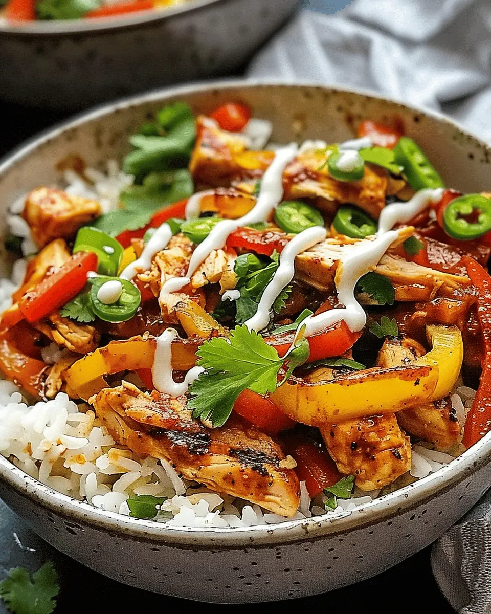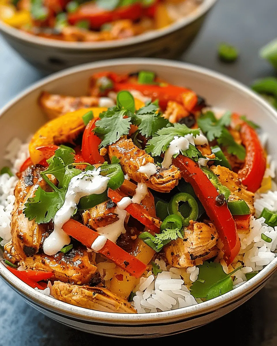 A delicious recipe for Chicken Fajita Rice Bowls that combines tender chicken, colorful veggies, and seasoned rice for a satisfying meal.