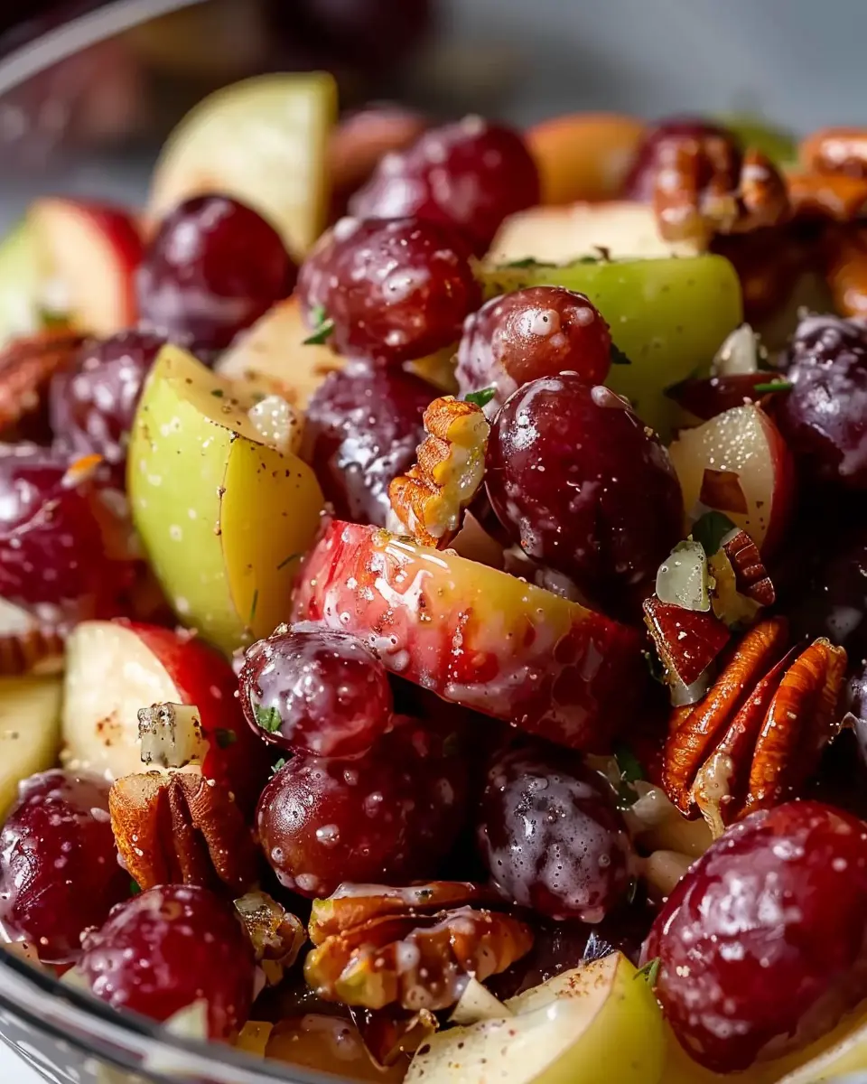 Imagine serving this colorful salad at a gathering or enjoying it as a quick lunch option—it’s versatile and perfect for any occasion. Plus, with its simple ingredients, you can whip it up in no time! Don’t miss out on the chance to introduce a refreshing twist to your meals today. For a deeper dive into the health benefits of apples and grapes, check out articles from Healthline and WebMD.