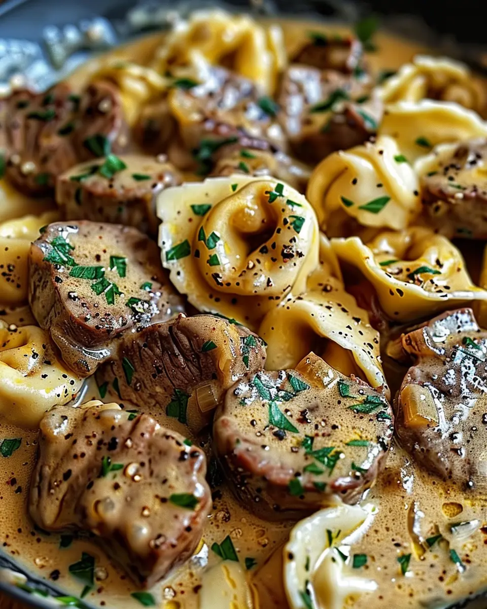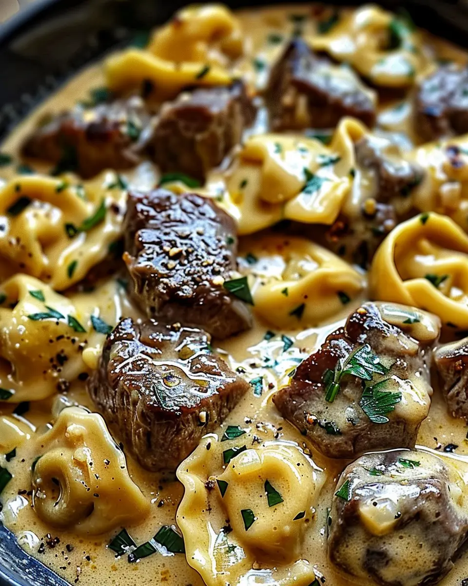 PrintCracked Garlic Steak Tortellini: Indulgent Creamhouse Sauce Bliss