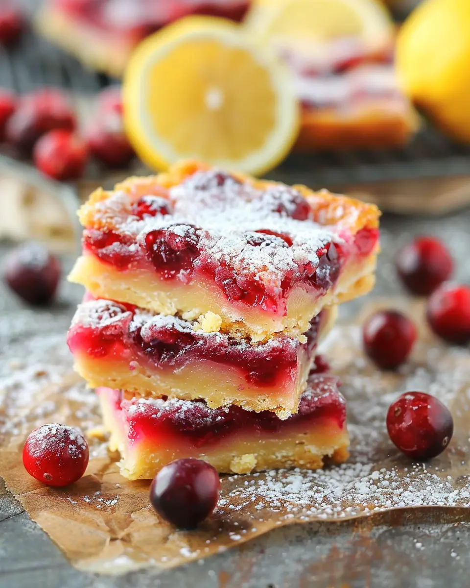 Cranberry Lemon Bars are a delightful treat combining the sweetness of cranberries with the tanginess of lemon, perfect for any occasion.