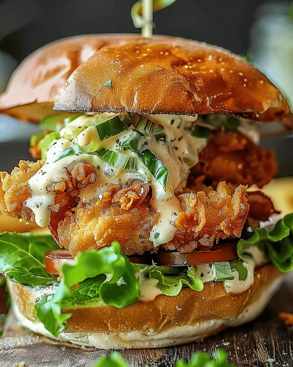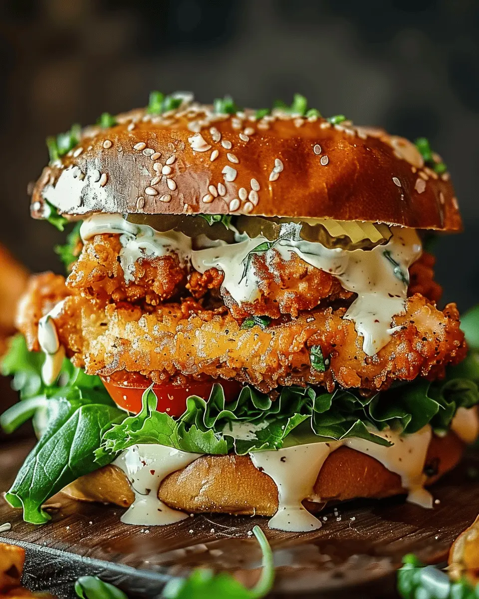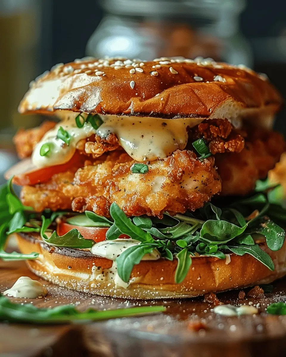 • Resting is crucial: Allow the fried chicken to rest on a wire rack for a few minutes before assembling your sandwich, which helps keep the coating crispy.