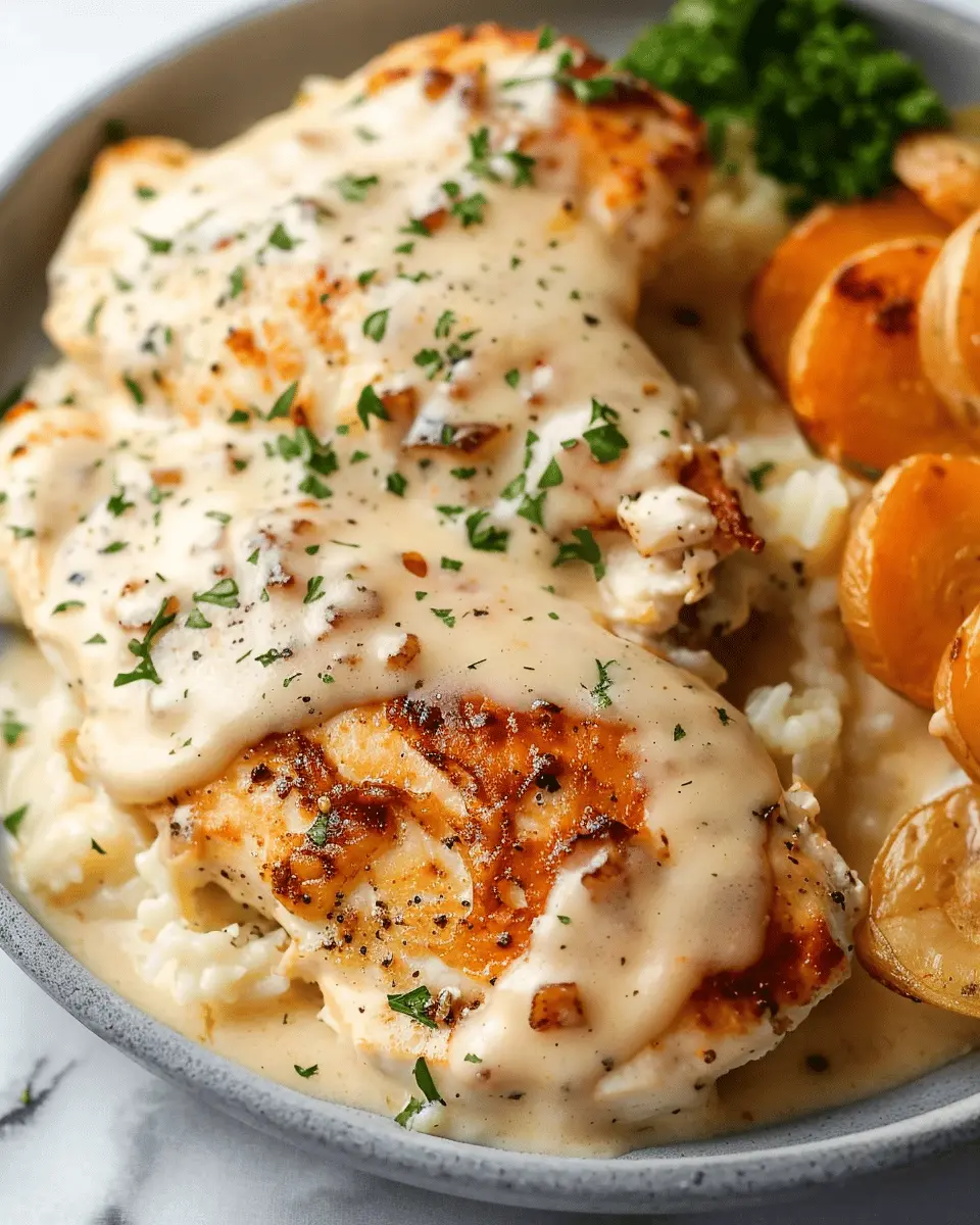 - Garlic Mashed Potatoes: Creamy and buttery mashed potatoes make an excellent base for your chicken, soaking up all that luscious creaminess.