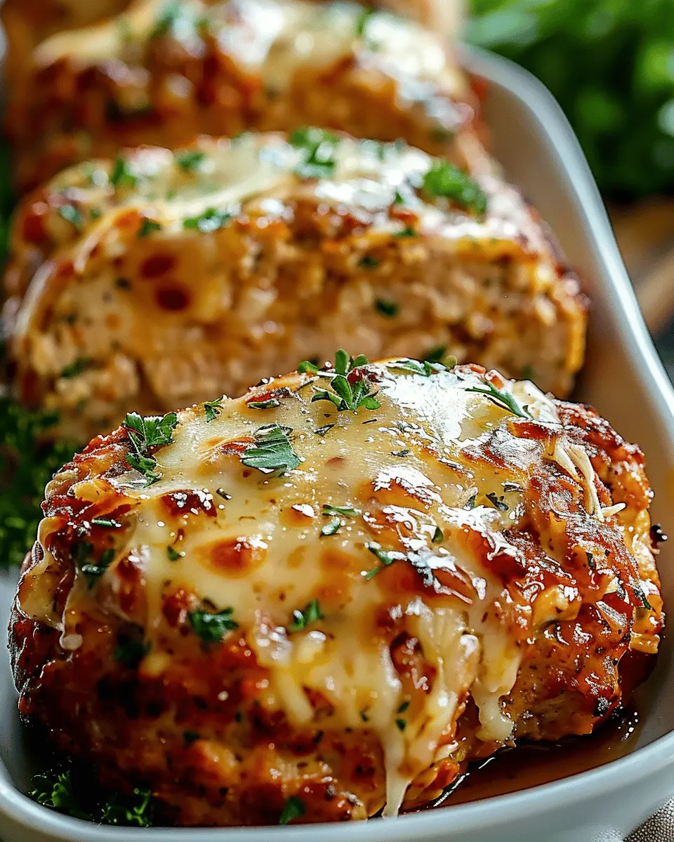 In conclusion, Garlic Parmesan Chicken Meatloaves are not only a delicious way to elevate a classic dish, but they’re also versatile and easy to prepare. Imagine the enticing aroma wafting through your kitchen, with tender meatloaves bursting with flavor from garlic and Parmesan. This dish is perfect for busy weeknights and fulfilling enough to impress guests.