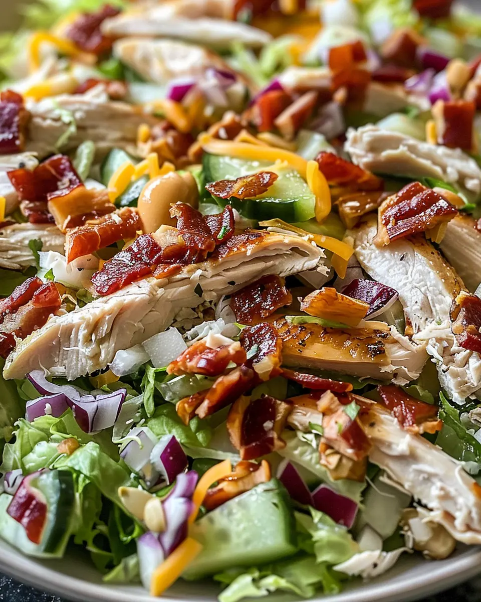 Absolutely! One of the best things about Million Dollar Chicken Salad is that it tastes even better after the flavors have had time to meld. If you’re planning for a gathering or just want to have a delicious meal ready for the week, whip up a batch and store it in the refrigerator. Just a heads-up: the ingredients, particularly the Turkey Bacon, can lose their crispy texture over time. For best results, you might want to keep any crunchy toppings separate until you’re ready to serve.