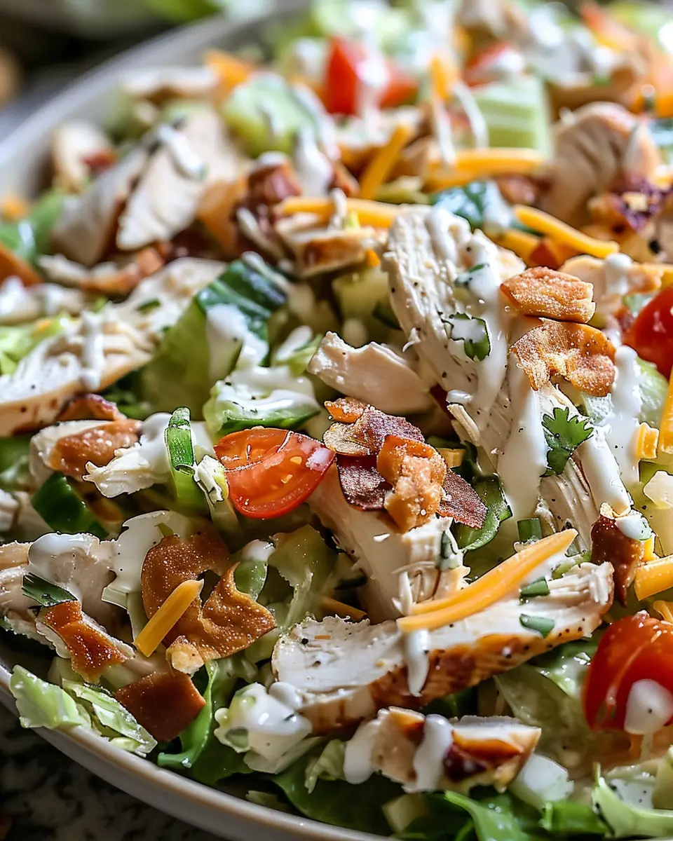 This salad offers a fantastic protein boost, featuring about 28 grams of protein per serving, thanks to the chicken ham and turkey bacon. Protein not only supports muscle growth but also keeps you feeling full longer.