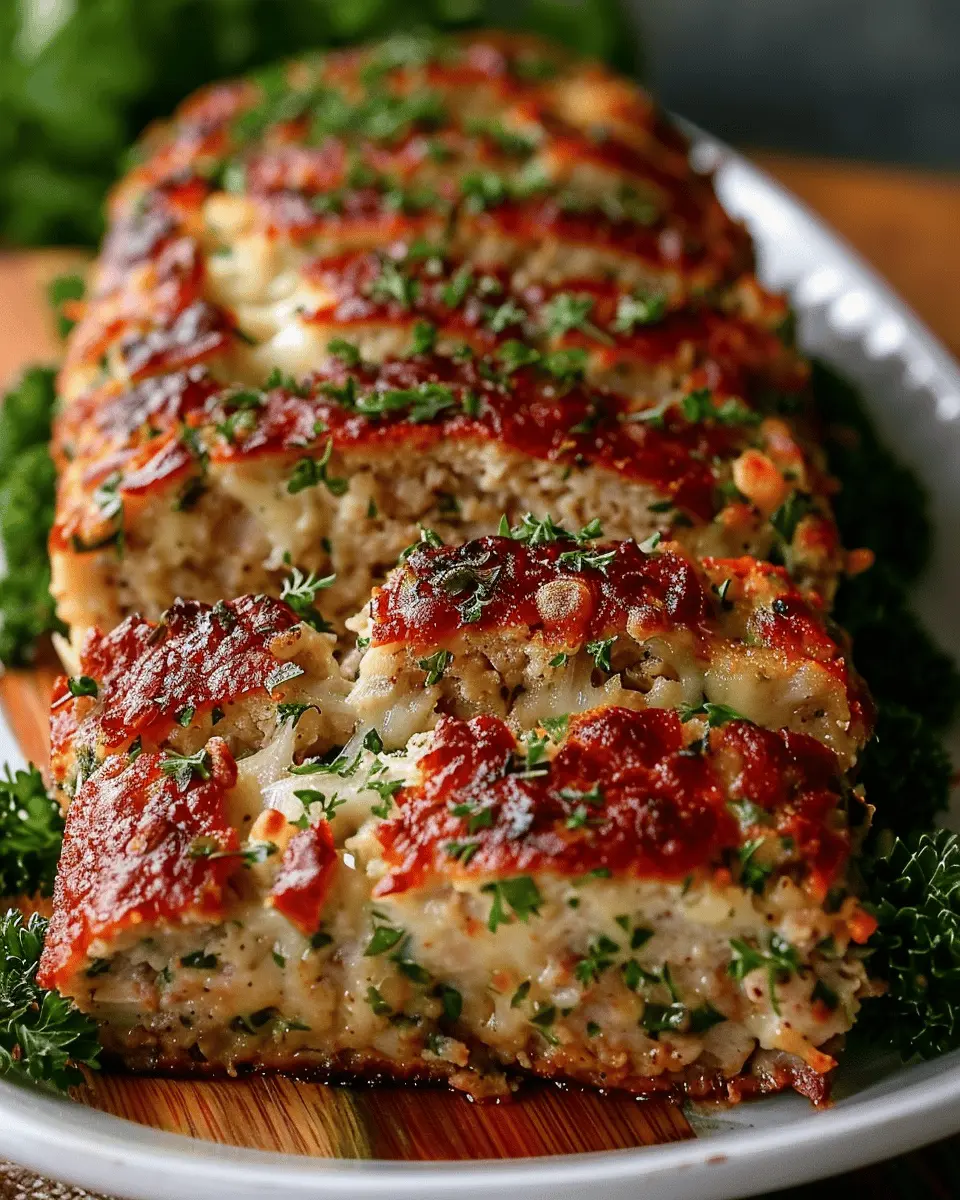 Another fun twist on classic Parmesan Chicken Meatloaf is to create a cheesy stuffed version. Before baking, form your meat mixture into a loaf shape and dig a channel down the center. Fill it with mozzarella or provolone cheese, then seal it up and bake as usual. This method results in gooey, melty goodness right in the center of your meatloaf, making each slice a delightful surprise.