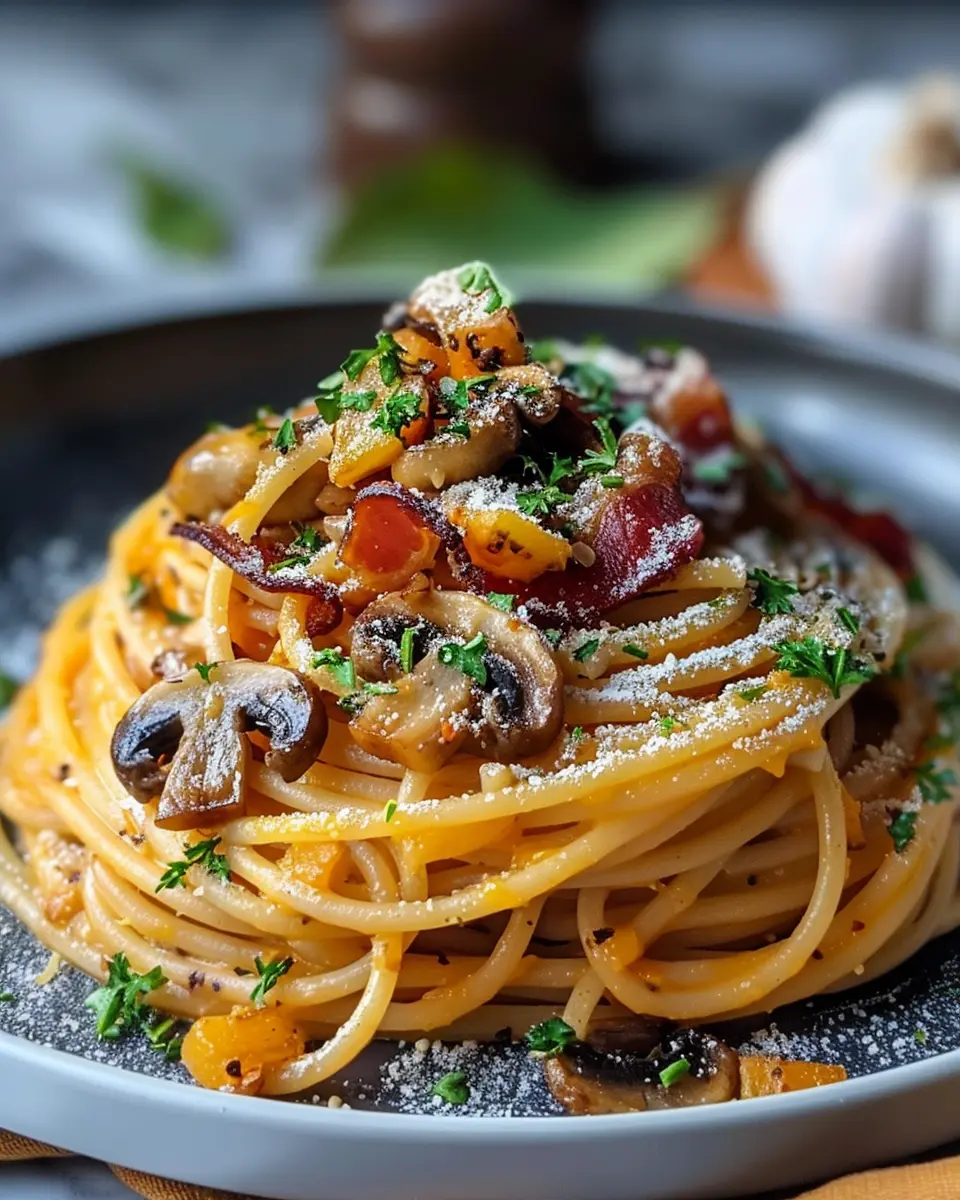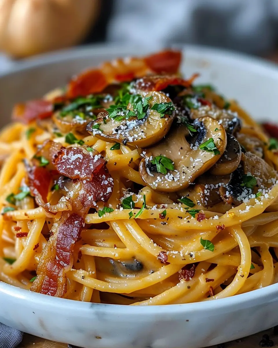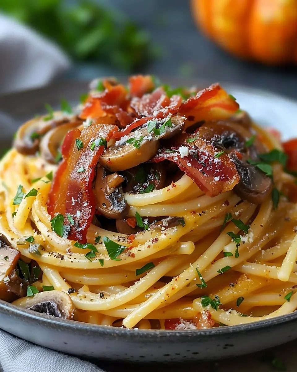 Introduction to Pumpkin & Mushroom Spaghetti with Crispy Turkey Bacon