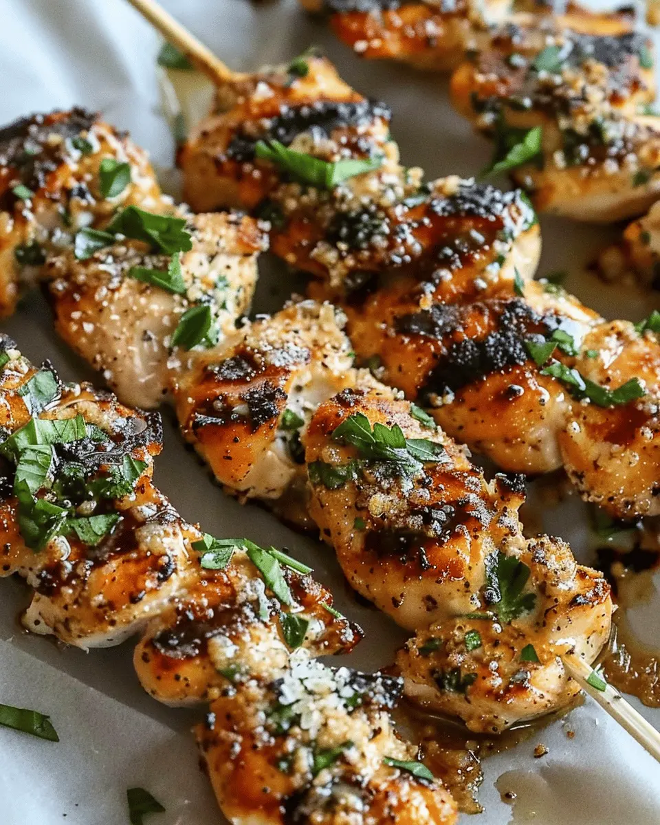 Deliciously juicy chicken skewers seasoned with ranch and parmesan for a flavorful meal.