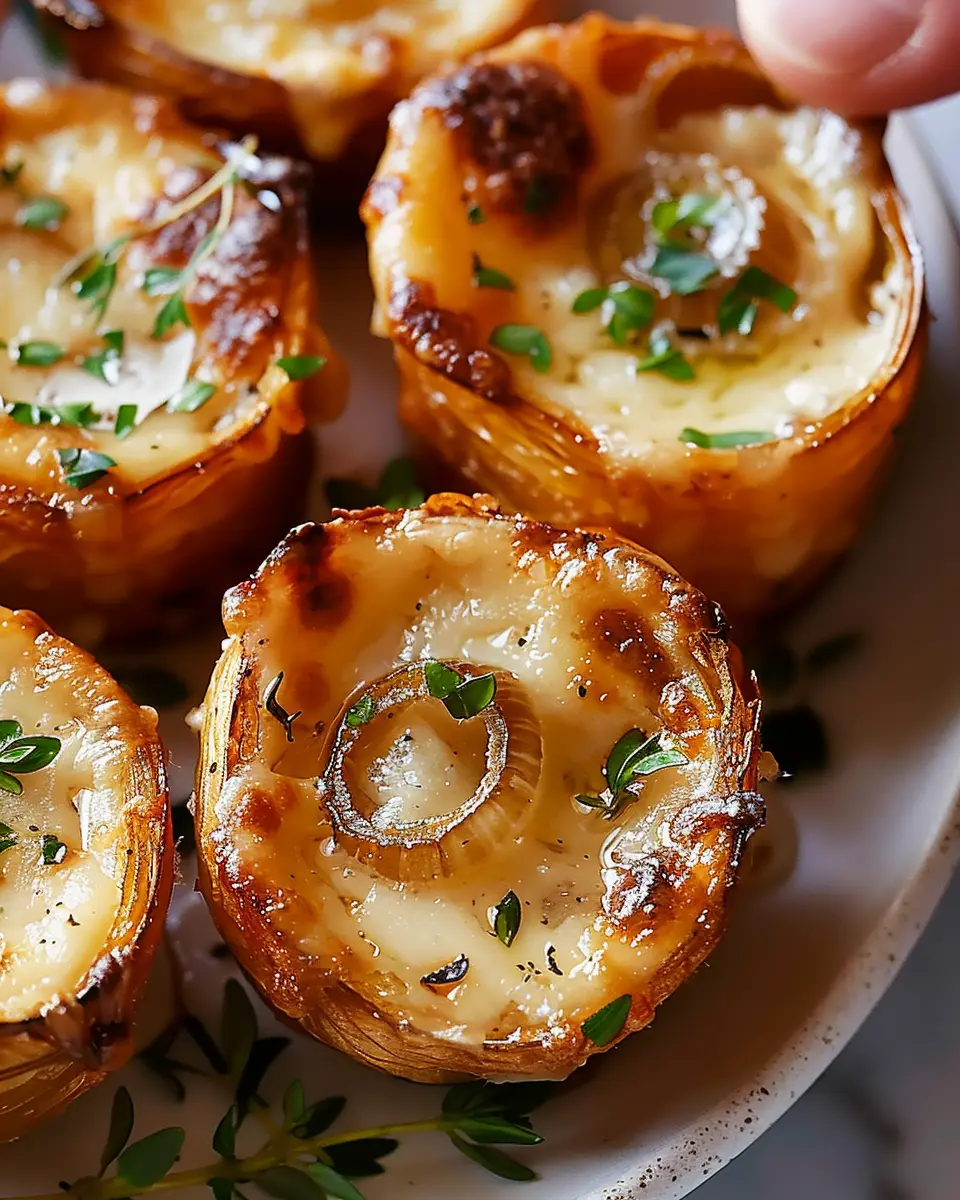 For a more veggie-packed version of savory French onion soup bites, consider sautéing a medley of mushrooms, spinach, and bell peppers to mix into your onion filling. This not only adds color and texture but also boosts the nutritional profile. If you want to make it even more flavorful, toss in some fresh herbs like thyme or basil. A sprinkle of crumbled feta or goat cheese adds a creamy element that contrasts beautifully with the onion’s sweetness.
