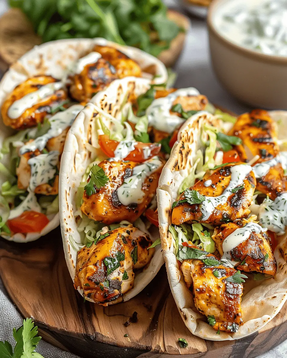 Don’t forget about the veggie lovers! For veggie-packed pitas, swap out chicken for a mix of your favorite roasted vegetables like zucchini, bell peppers, and carrots. Season them with Mediterranean herbs and serve with a homemade tahini or hummus spread in the pita. This version is not only hearty but also packed with nutrients.