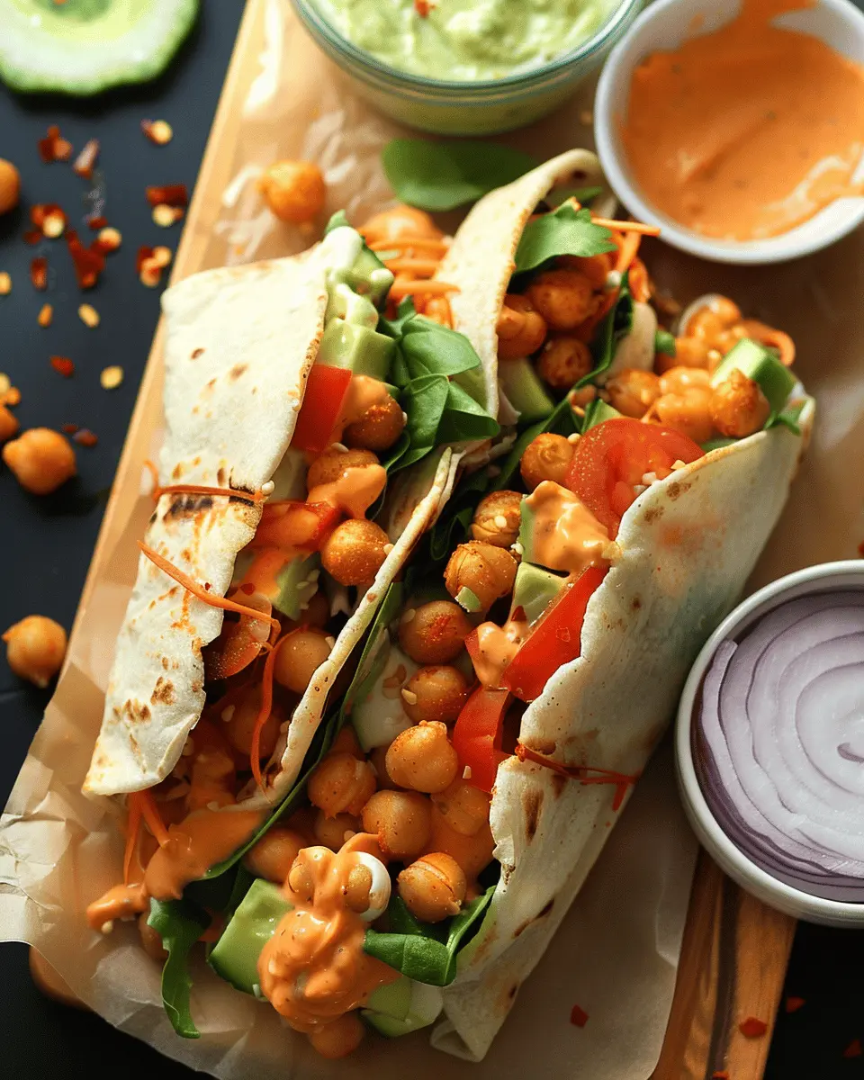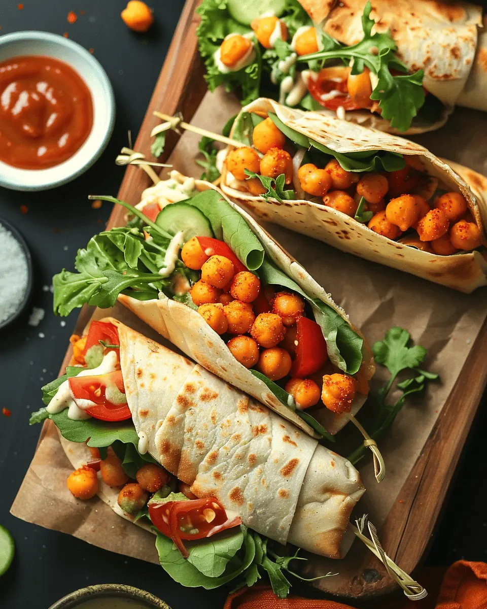Experience the zesty taste of Spicy Buffalo Chickpea Wraps, a delightful plant-based meal that’s both satisfying and flavorful.