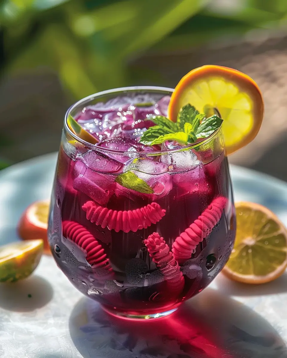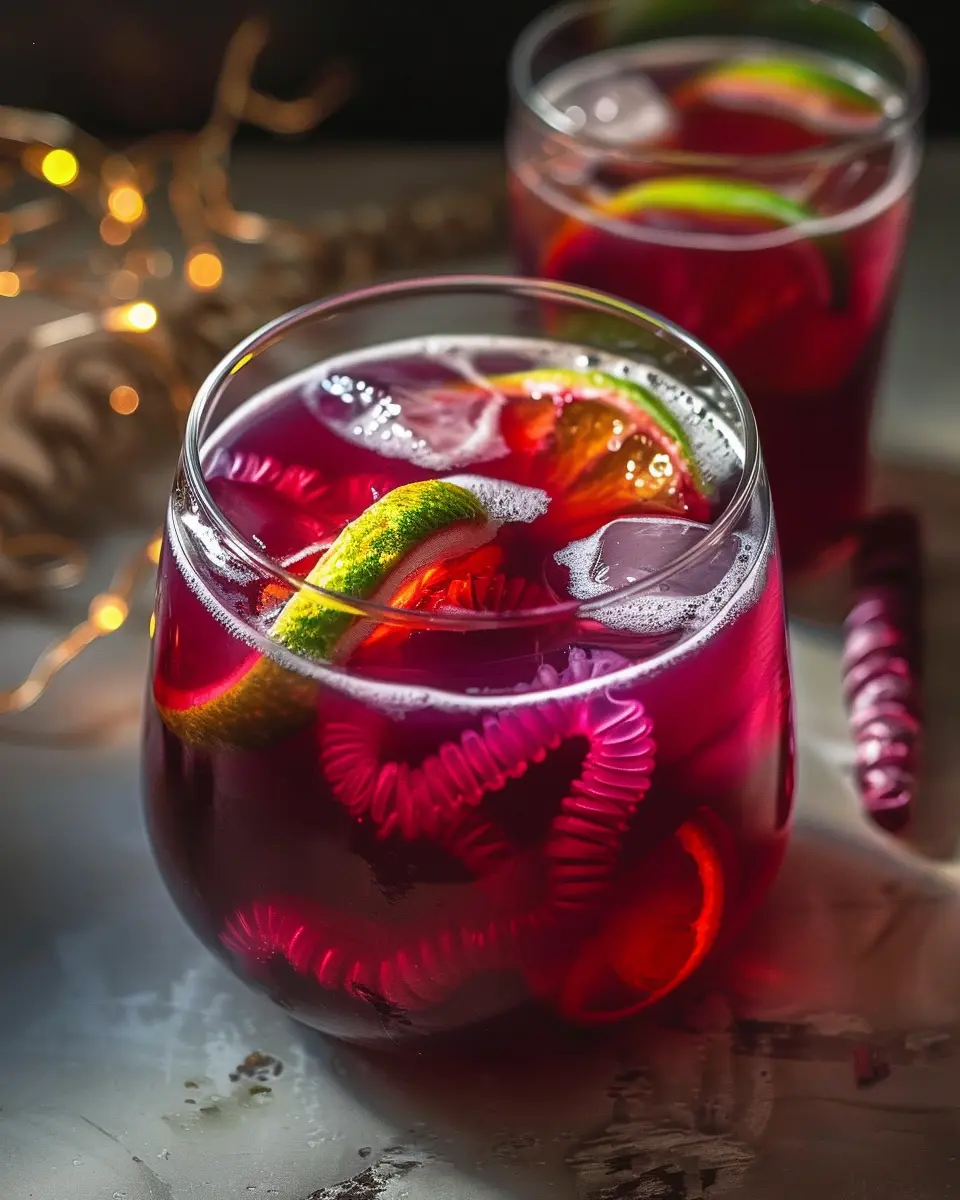 Presentation is key for Witch’s Potion Punch. Use a large, clear punch bowl to showcase your colorful ingredients. Add floating fruit slices, such as oranges and berries, for a pop of color, and consider using dry ice for a spooky, foggy effect (just remember not to ingest it!). Garnish individual glasses with sprigs of rosemary or edible flowers for an extra touch of magic.